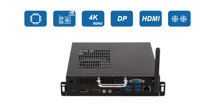 鼎盛智能DSIPC PG08可插拔電腦模塊集成Nvidia GT1030獨立顯卡,完美支持4K@60HZ顯示輸出,采用雙風扇設計,具有良好的產品穩定性。PG08支持 DP+HDMI雙顯示輸出,大大增強了產品在視頻、流媒體等領域的算力與擴展性能。支持 1×GbE、2×USB 2.0、4×USB 3.0,能夠更好的滿足用戶對于I/O設備連接的需求,各接口規范均能與市場主流設備達到相同標準。通過80針腳JAE插頭和設備插座接口連接,具有易拆易裝、易升級、易部署、連線少、節能省電等優勢。PG08可以幫助用戶實現更具成本效益的數字標牌和其他顯示解決方案的設計、部署和管理,同時還能有效降低用戶的維護、升級成本。