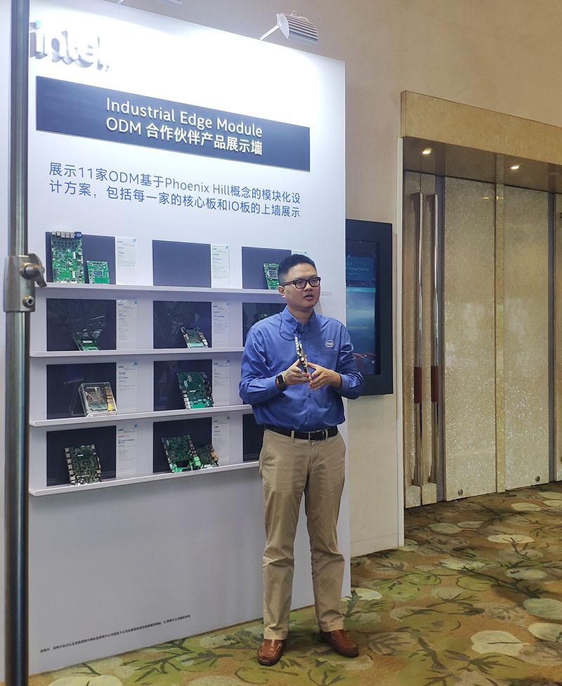 英特爾物聯網事業部高級產品經理沈溢博士正在向合作伙伴介紹鼎盛智能工業邊緣節點核心板