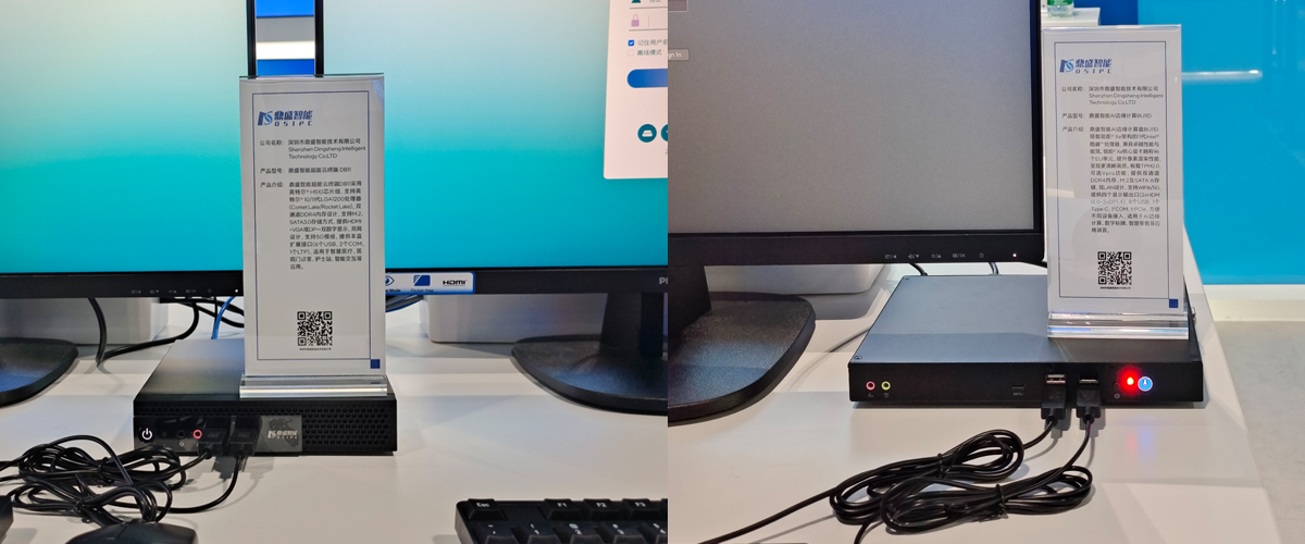 在大灣區展廳里,鼎盛智能展示了全新12/13代Alder Lake、Raptor Lake平臺OPS、OPS-C標準新品,性能核與能效核混合CPU,提供更強勁性能支持,支持DDR5雙通道內存、4K視頻解碼、一鍵還原系統、方便部署,為用戶提供多樣化的教育解決方案應用。