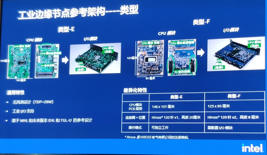 針對工業場景多應用需求,鼎盛智能與英特爾一起定義了一款工業邊緣節點參考設計:IEN-DS8665U核心板【Type F (Flexible,屬于靈活定制版);英特爾工業邊緣節點參考設計共有兩款架構類型,另一種是Type E (Extendable),屬于簡約擴展版】,適用于需要較多擴展接口的如工業邊緣控制器、交通、能源、智能制造、醫療、安全等領域等。Type F類型板僅帶有eDP接口,須通過兩個120針腳的板對板連接器搭配外設模塊組成PLC、CNC等產品應用。